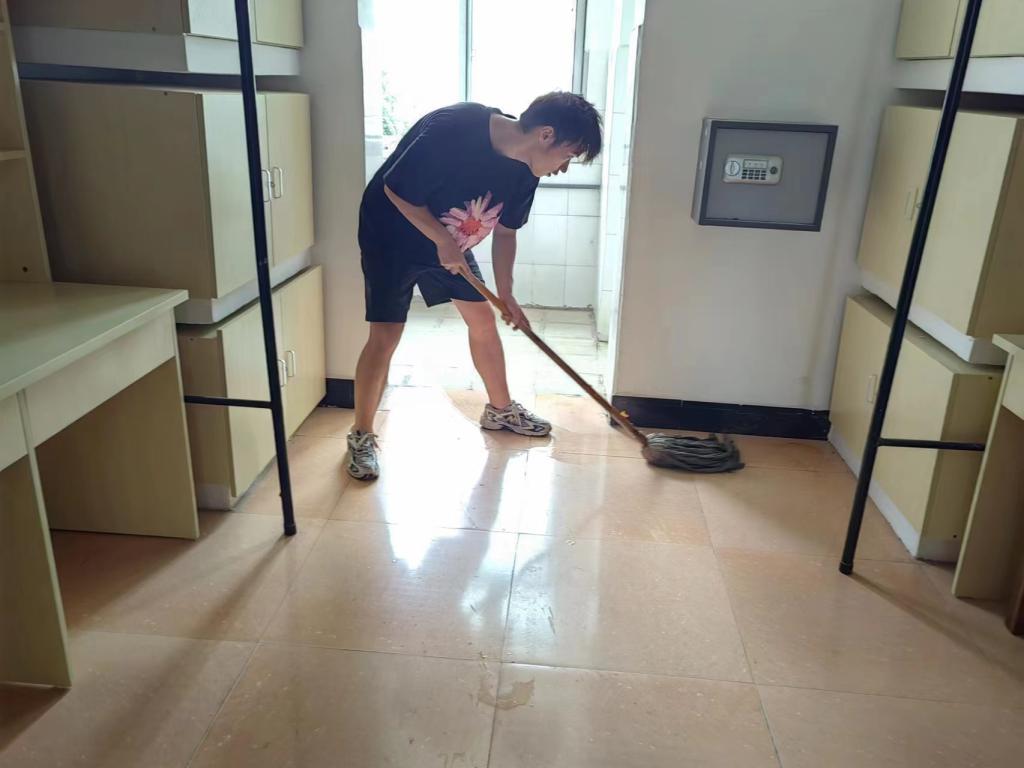 活动开始,全体成员在滨江1栋集合,分发完打扫工具后,成员们自行分组,分工合作,进行打扫。清扫工作井然有序,大家认真擦拭桌椅、柜子、窗户等,将物品摆放整齐,并开窗通风,保持空气清新。经过一下午的打扫,寝室干净整洁,面貌焕然一新。最后,同学们对宿舍开关、空调、风扇、桌椅、门窗等一一进行了安全检查。